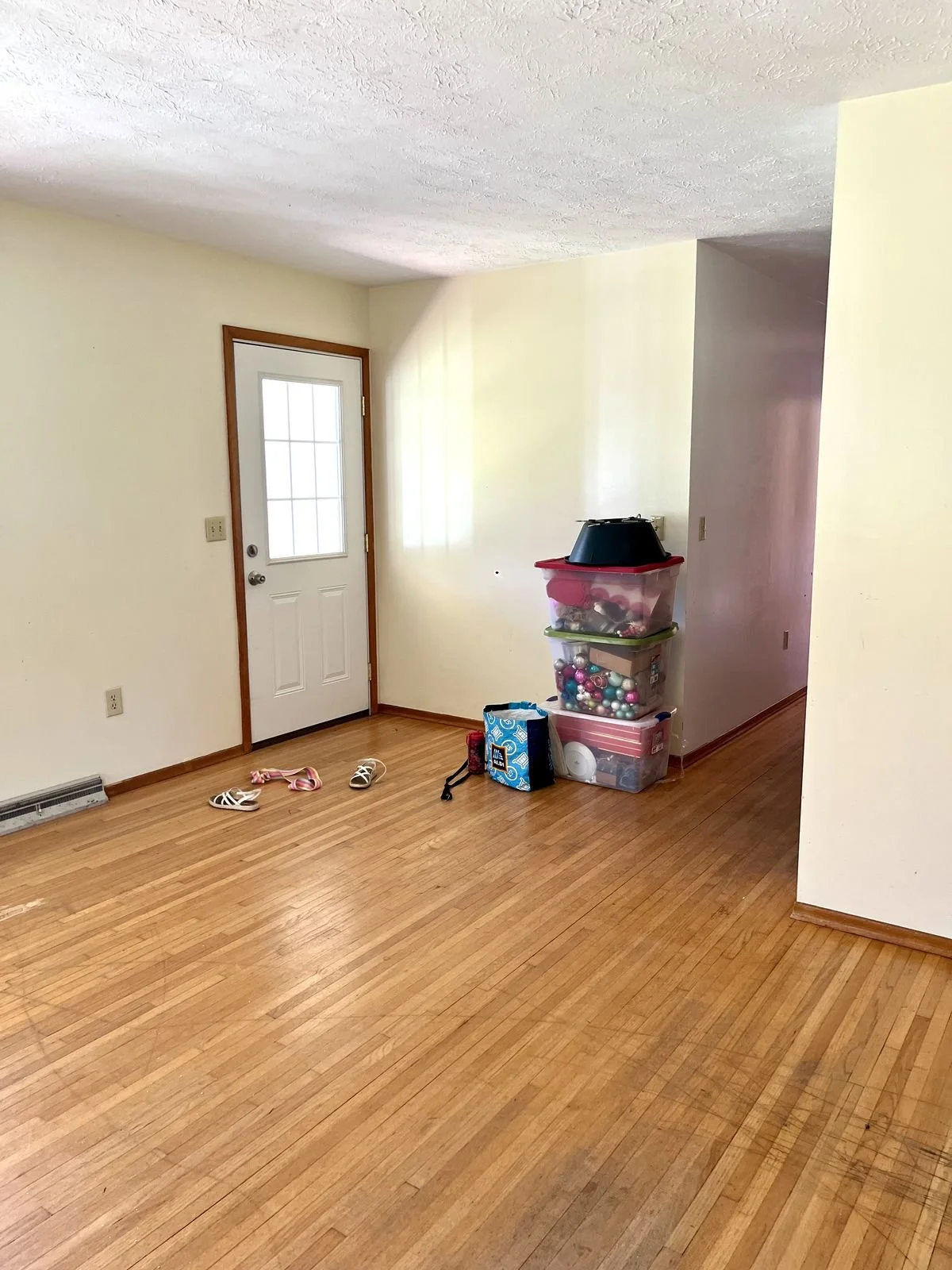 There is no separate entryway. Also typical for this style home. If we decide to stay here permanently, we will likely add an addition to the front of the house, but for now, we will do what we can to make it functional without a separate entry (or coat closet for that matter. More on that later. Okay, maybe we are knocking SOME walls down.)